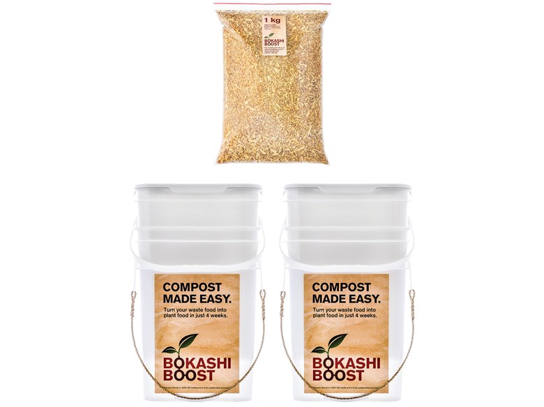 The perfect pack for your Kiwi family. Get on the composting road and show your concern for the planet. This is a continuous compost system, with 2 buckets and a kilo bag of Bokashi Boost you're good to go for 3 months of non-stop, easy composting.